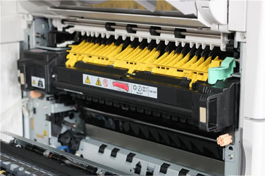 我们以常见的数码复合机为例(以下所述均为激光数码复合机),其工作温度要求约在10℃-35℃之间。当温度过低时机器内部的橡胶组件会变硬,如果刮板变硬则会造成废墨刮不干净影响印品效果,同时还会加快机器的磨损;当搓纸轮变硬时则会导致走纸打滑而出现卡纸现象。