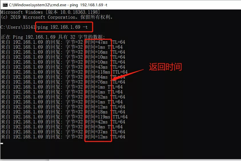 判断的方法为:电脑上打开开始菜单→运行→输入“cmd”回车→输入ping +“设备的IP地址” -t 回车,返回时间都在200ms以内为正常数值。其余显示为网络连接有问题。
