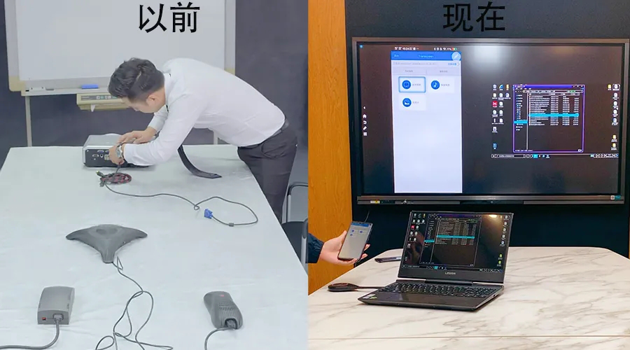 2 、设备投屏。只需一个传屏器就可将电脑及手机文件投屏到会议平板中,摆脱各种线材的束缚,让会议环境更简洁,节约时间成本,简化会议流程。