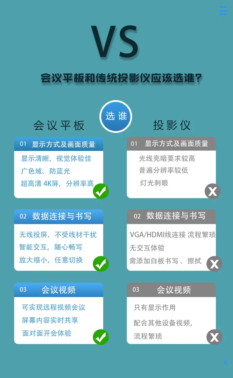 与选择其他电子设备一样,会议平板的选择也需要关注一些参数,画质决定观看体验,系统决定流畅度,所以,在选购时不妨重点参考下以下参数:触控系统 、书写流畅度 、色相饱和度。